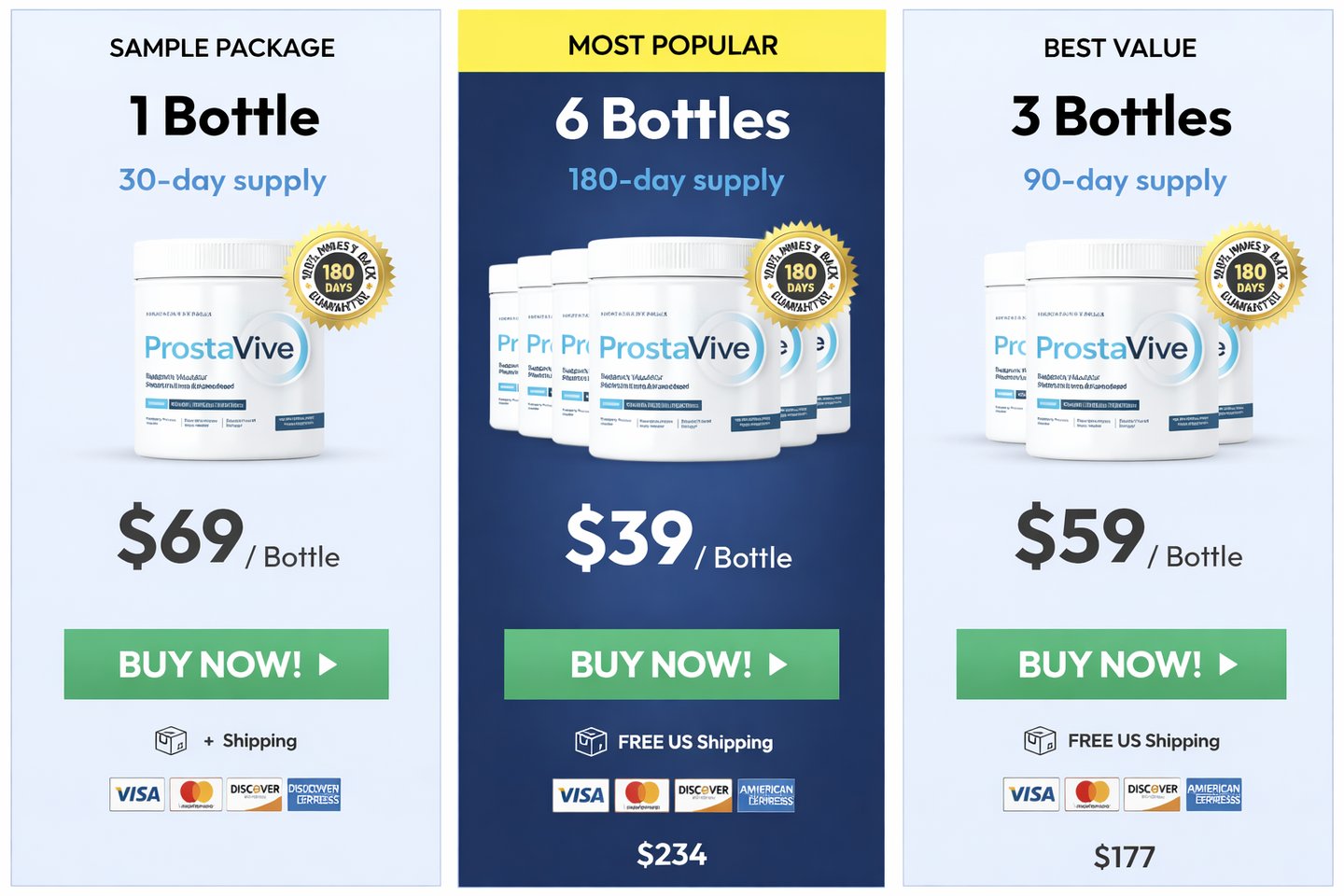 Once you choose your package and click the button below, you’ll be taken to a secure checkout page to enter your details. After that, ProstaVive will be shipped straight to your door.